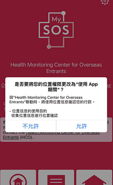 首先通過 App Store 或者 Google Play Store 下載並安裝好「MySOS」應用程式;在首次執行時,會要求你確認使用條款、私隱政策,在這些畫面都選「同意」繼續;