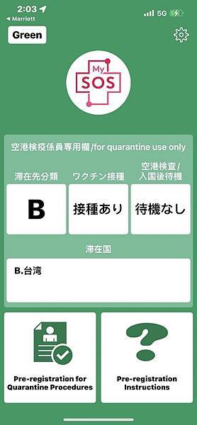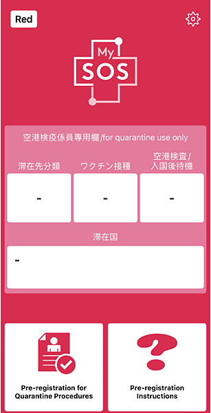 進入「MySOS」頁面,現在你可開始匯入資料。按畫面左下角「Pre-registration for Quarantine Procedures」;