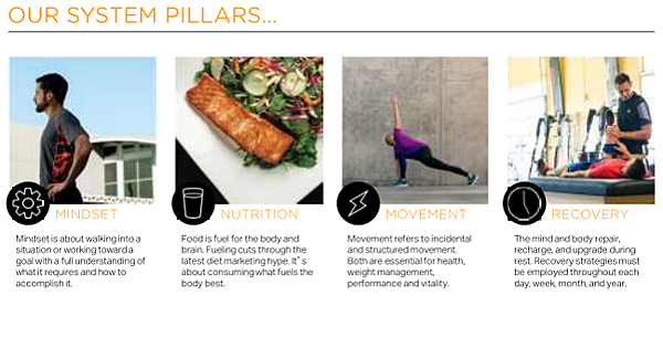 儘管EXOS期初創立本身是針對運動員而服務的,其本質為發展全人類的表現,該體系提出的「心智、營養、訓練、恢復」的訓練思路